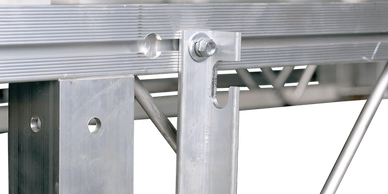Cross-members every 12" which eliminates side to side flex and fully supports the decking.